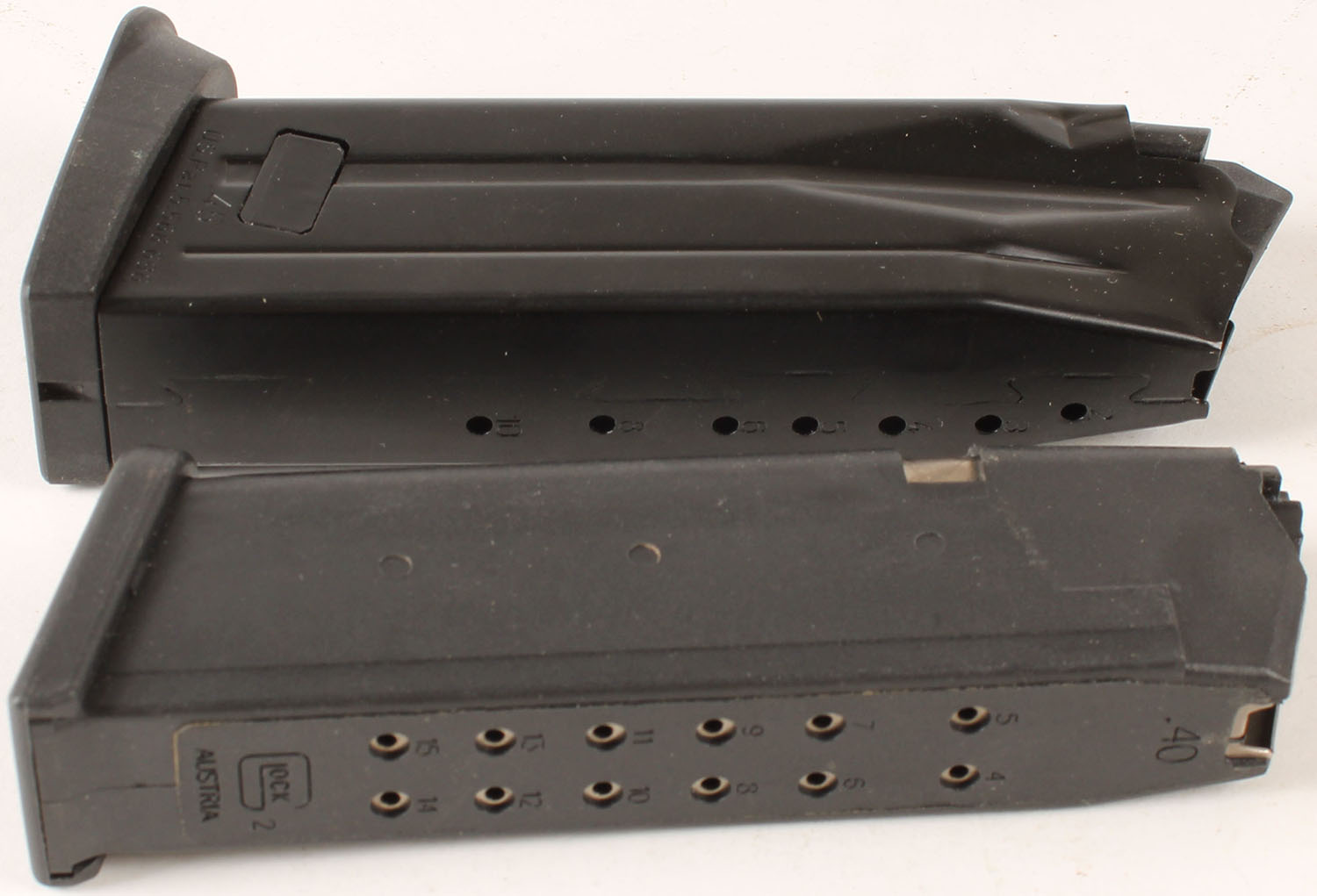Lot of 2, Glock 40 cal 15 rd mag and HK .45 cal mag. Grade: Very Good ++ - Value: 16 to 50
