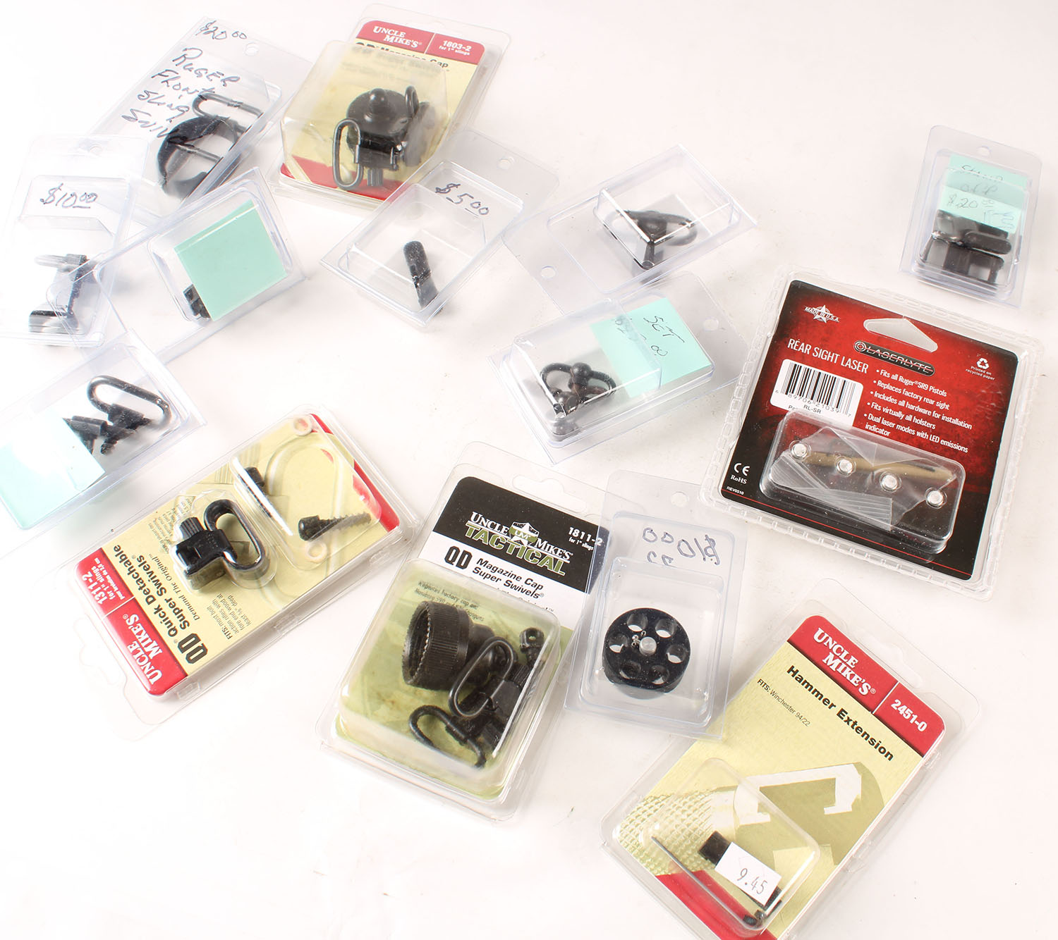 Large lot of gun parts, mostly sling swivels but others items as well. Grade: Excellent - Value: 10 to 50