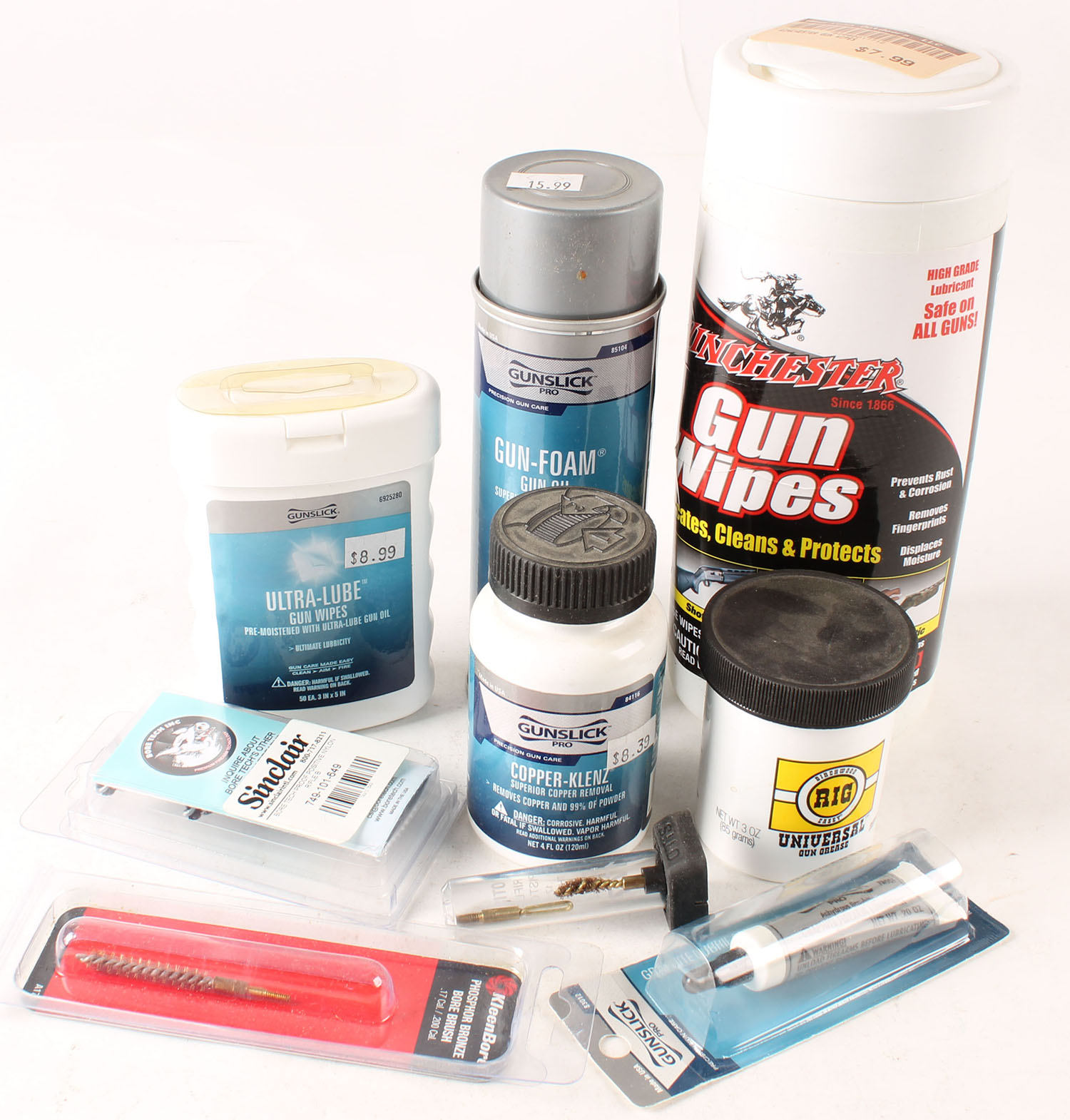 Lot of gun cleaning products. Grade: Excellent - Value: 10 to 50