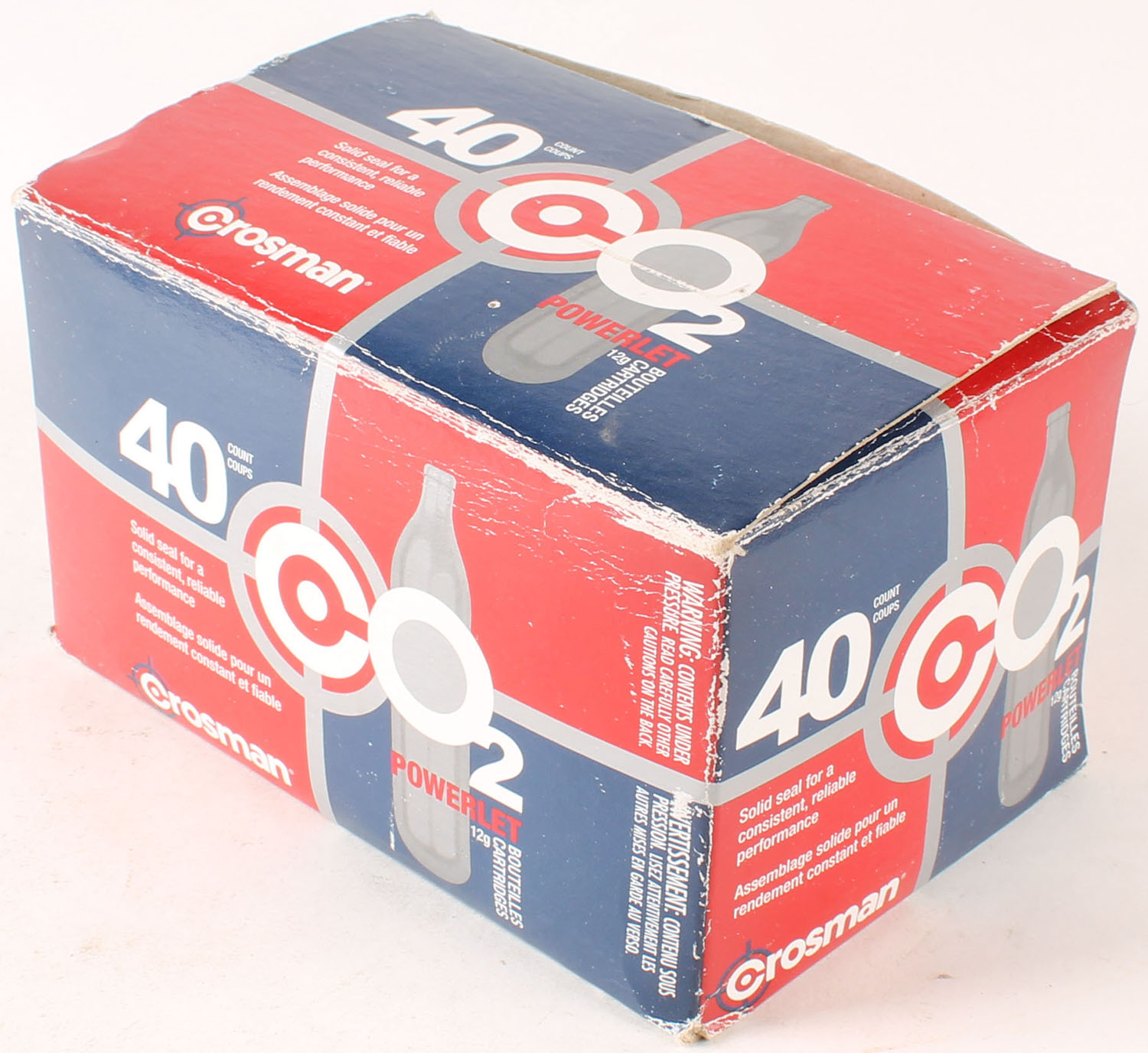 Crosman CO2 containors, appears full of 40. Grade: Excellent - Value: 10 to 40
