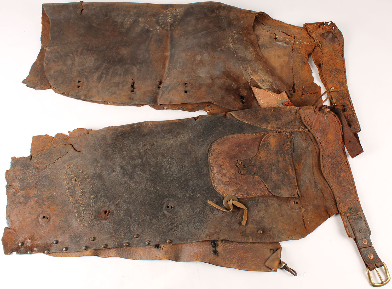 Early Leather Chaps, worn. Grade: Poor - Value: 2 to 50