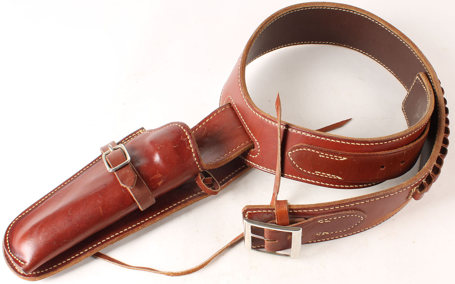George Lawrence Leather ammo belt with holster, 79 505, M, 38''. Grade: Excellent - Value: 30 to 120