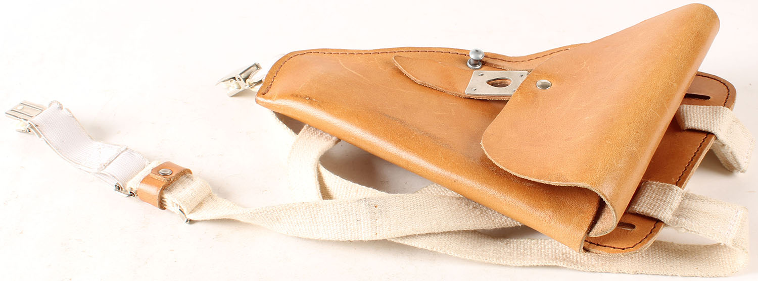 Pistol leather holster with belt. Grade: Excellent - Value: 10 to 50