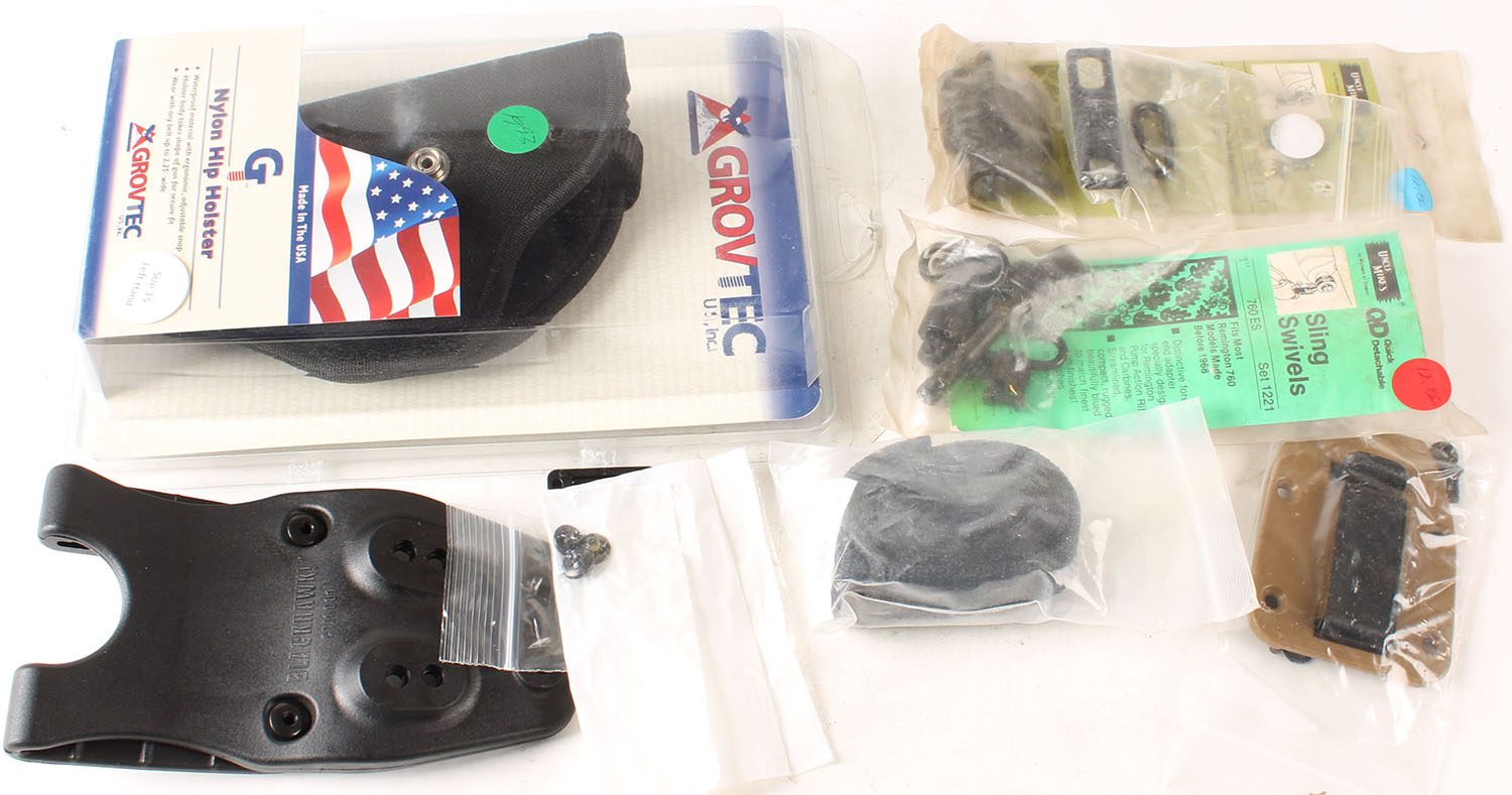 Lot of NIB pistol holsters in the original packaging, see photo for more details. Grade: MINT - Value: 10 to 80