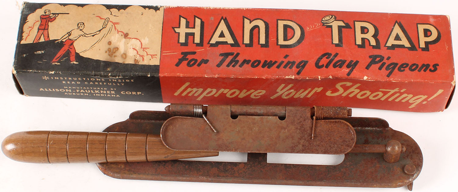 Allison-Faulkner Hand Trap thrower in the original box. Grade: Very Good ++ - Value: 10 to 40