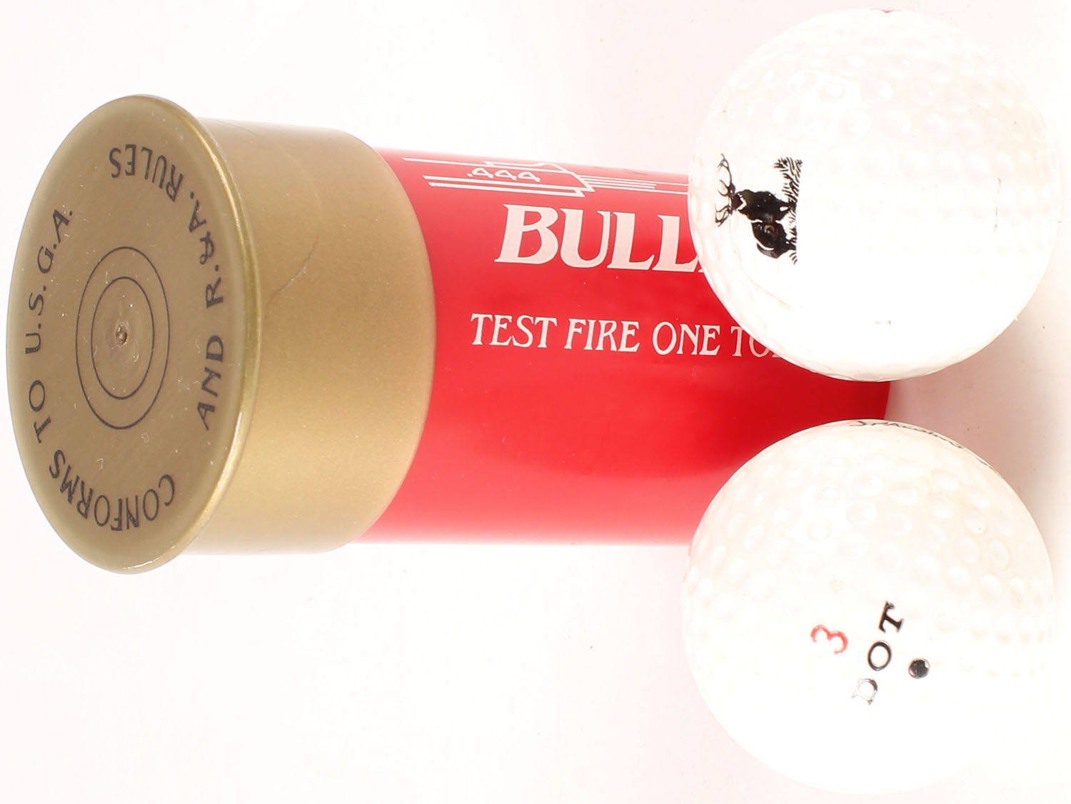 .444 Bullet Golf balls inside of shotshell case, two total. Grade: Excellent - Value: 6 to 30
