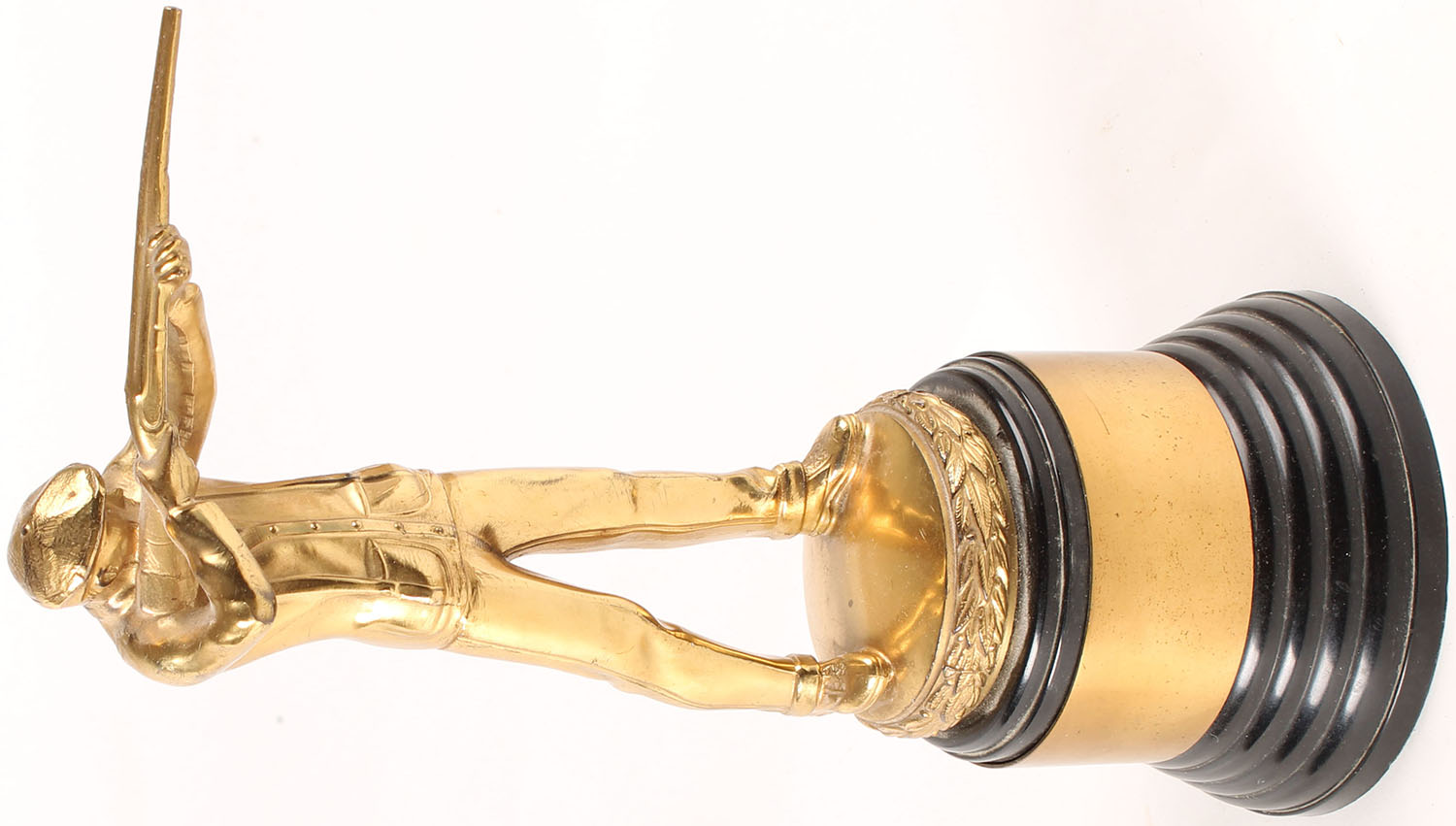 Shooting trophy has shooter standing as he is aiming, unmarked, 10'' tall. Grade: Excellent - Value: 6 to 30