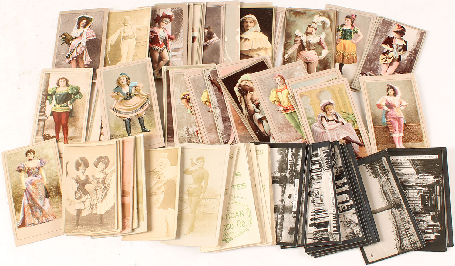 Lot of small American Tobacco Co. black & white photos with ads on back, 1 1/2'' x 3 1/2''. Grade: Very Good - Value: 2 to 30