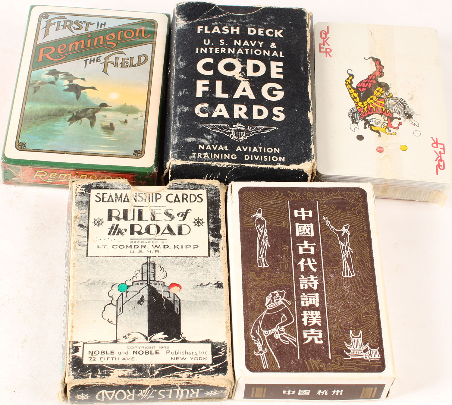 Lot of 5 decks of playing cards. Grade: Excellent - Value: 6 to 30