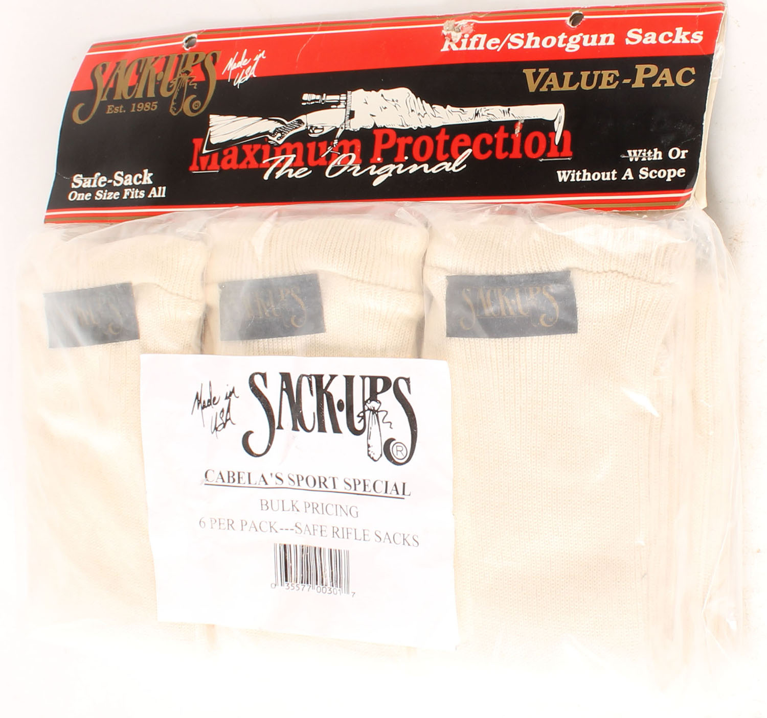 Lot of Rifle/Shotgun Sacks large enough to cover gun with scopes. Grade: MINT - Value: 6 to 30