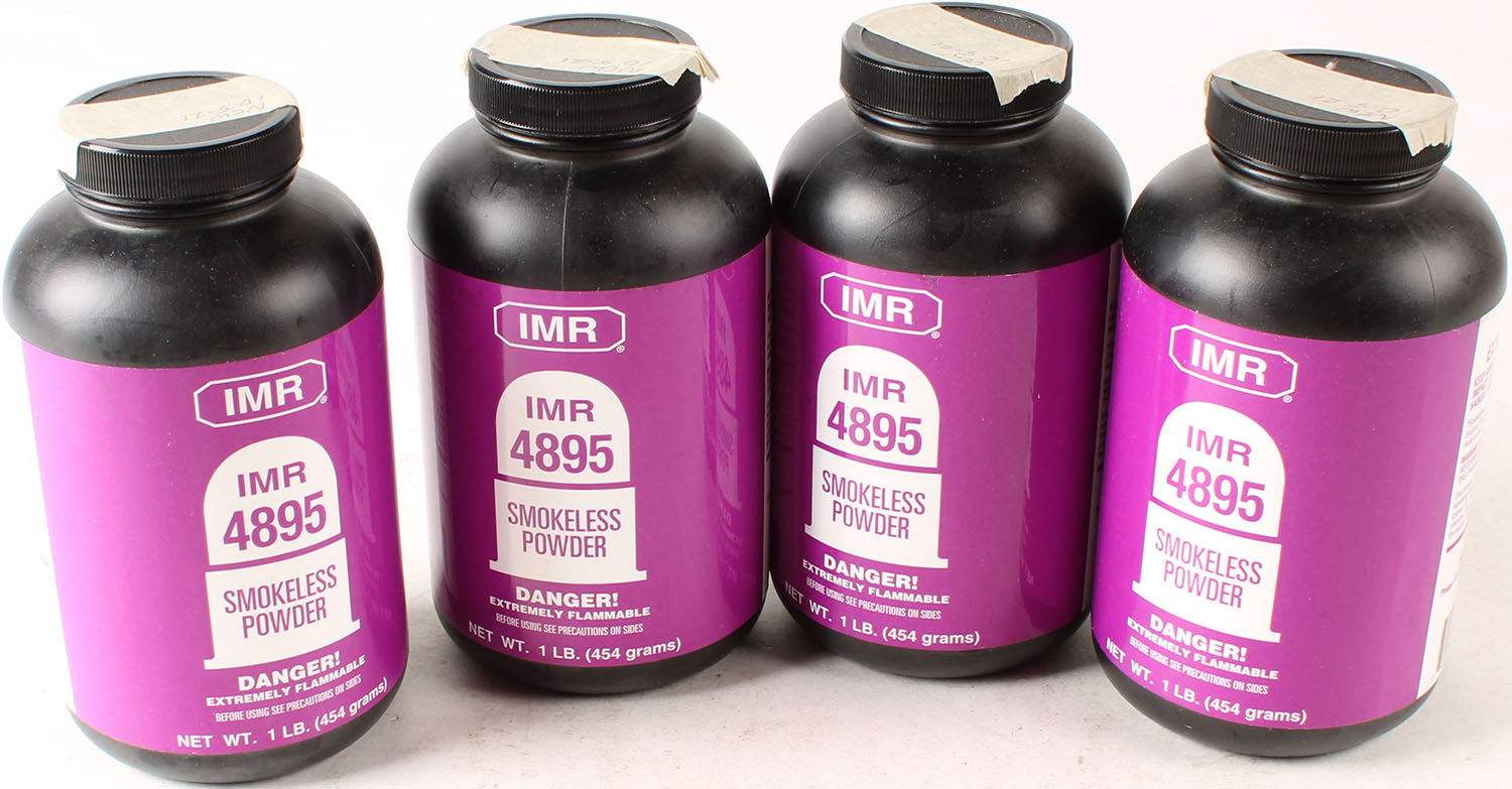 IMR, Lot of (4) 1lb bottles of 4895 Smokeless Powder, all bottles are full or mostly full. Grade: Excellent - Value: 20 to 100