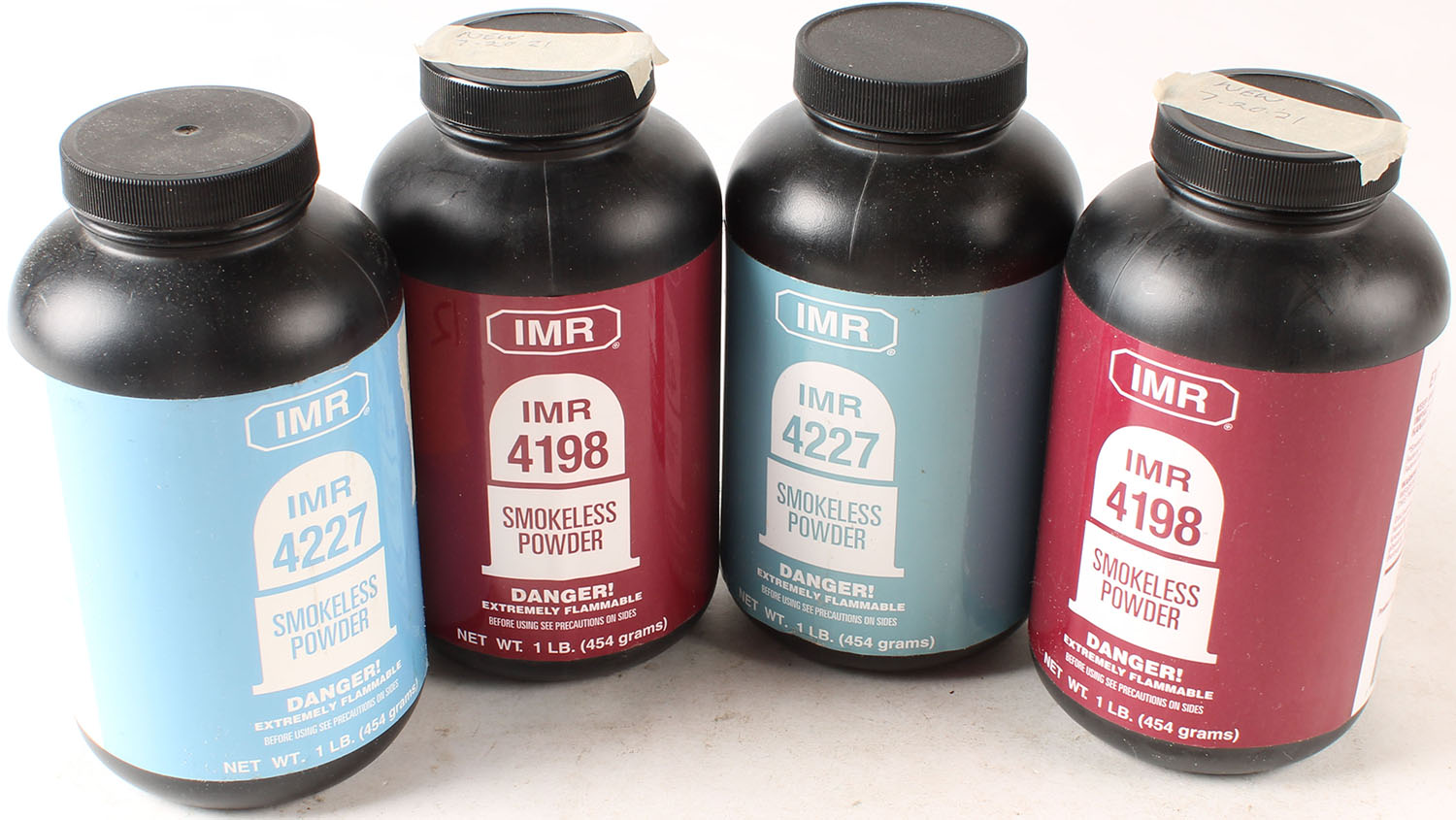 IMR, Lot of (4) 1lb bottles of Pistol Powder NO. 4198, 4227, Smokeless Powder, all bottles are full or mostly full. Grade: Excellent - Value: 20 to 100